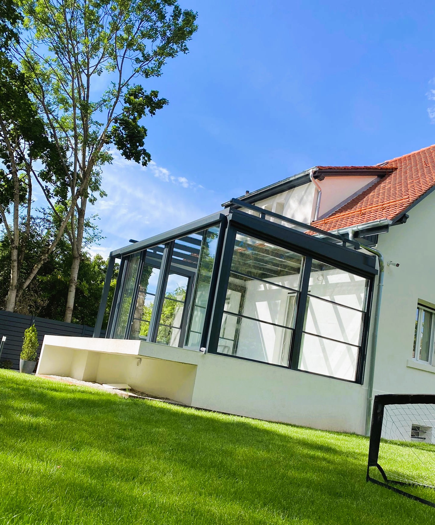 ✔ Bezrámové zasklení je ideální volbou pro ty, kteří hledají čistý design, vzdušnost a nerušený výhled. Skleněné tabule nemají svislé dělicí rámy a vytváří dojem celoprosklené plochy.
