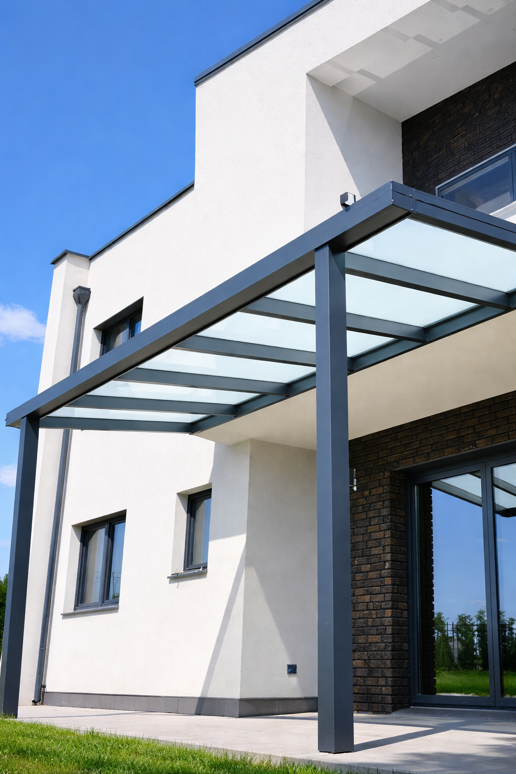 Základem každé polykarbonátové pergoly je hliníková konstrukce, vyráběná přesně na míru konkrétnímu prostoru. Hliník je lehký, pevný a zcela bezúdržbový – nekoroduje, neloupe se a nevyžaduje žádné nátěry.